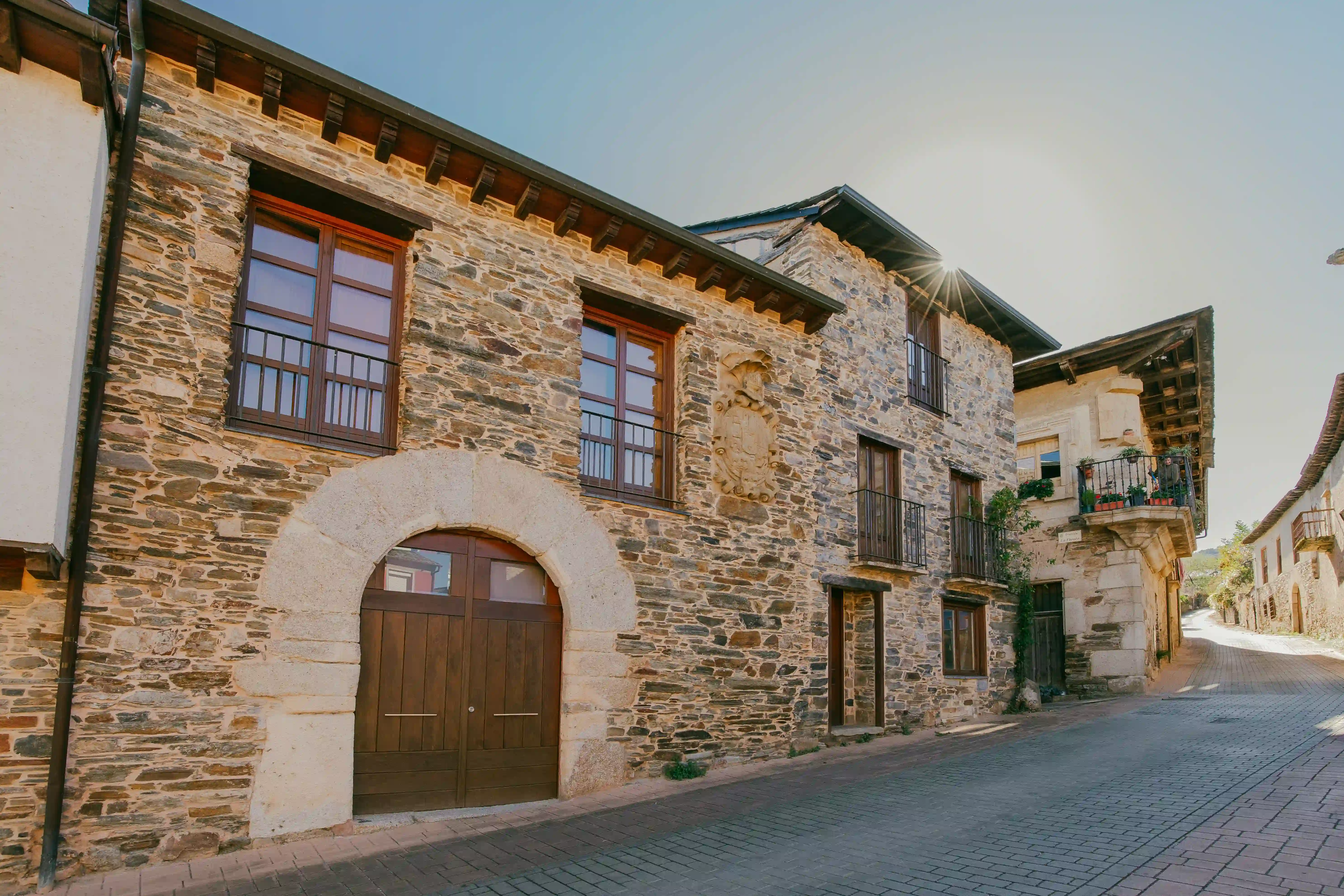 - Un Viaje al Pasado Arquitectónico: El principal atractivo del pueblo reside en su excepcional estado de conservación. Pasear por sus calles es realizar un viaje en el tiempo. La prosperidad económica de antaño, ligada al comercio del vino, se refleja en las imponentes casas solariegas y palacios blasonados que flanquean sus estrechas y empedradas calles. La arquitectura tradicional berciana, con sus muros de piedra maciza y tejados de pizarra, otorga al conjunto una armonía y un carácter únicos. La Plaza del Herrador, rodeada de estas edificaciones señoriales, es un punto clave para admirar este legado.